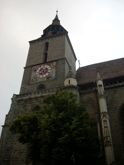 Nad miastem góruje potężny masywny gotycki Czarny Kosciół (Biserica Neagra). Ta późnogotycka świątynia ma długość 89m, szerokość 38m. Dach jest dwukalenicowy (nawa szersza i wyższa od prezbiterium). Ogrom budowli może podkreślać fakt, że nieproporcjonalnie do całości niska wieża ma 65m wysokości. Zdobi ją sześć późnogotyckich i renesansowych portali. Wokół prezbiterium, rozdzielające wysokie gotyckie okna smukłe przypory zwieńczone są strzelistymi sterczynami. Budowę kościoła rozpoczęto w 1385r a ukończono w 1447r. Wewnątrz znajdują się m.in wielkie organy o 4 tys. piszczałek (w sezonie letnim koncerty) z 1839r oraz bogaty zbiór wschodnich dywanów z XV - XVIIIw. Pożar miasta, jaki miał miejsce w 1689r strawił również drewniane wyposażenie kościoła, a mury poczerniały - stąd nazwano świątynię "Czarnym Kościołem". Przed południową fasadą stoi pomnik Ioana Honterusa, XV-wiecznego humanisty, zwolennika luteranizmu, założyciela w 1535r pierwszej drukarni w Siedmiogrodzie.